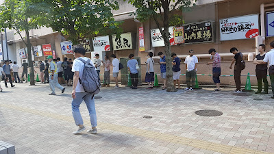 Vor einem Geschäft auf der anderen Straßenseite bildet sich eine lange Schlange aus jüngeren und älteren Männern. Ein Wachmann in Uniform hat eine Art Verkehrsschild an einem langen Stab in der Hand. Damit zeigt er den vielen Leuten, die hinzuströmen, wo das Ende der Schlange ist. Endlich geht der Laden auf und die Männer stürzen hinein, nicht ganz so ordentlich, wie ich das in der U-Bahn beobachtet habe.