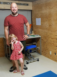 | Eva und ihr Papa im Büro im Keller |