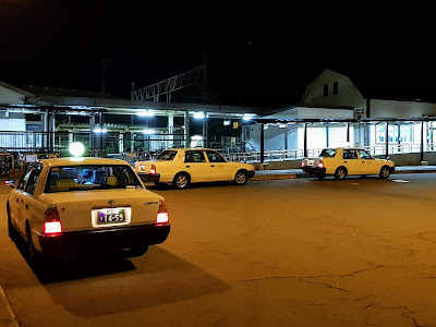 | Taxis am Bahnhof warten auf Kundschaft |